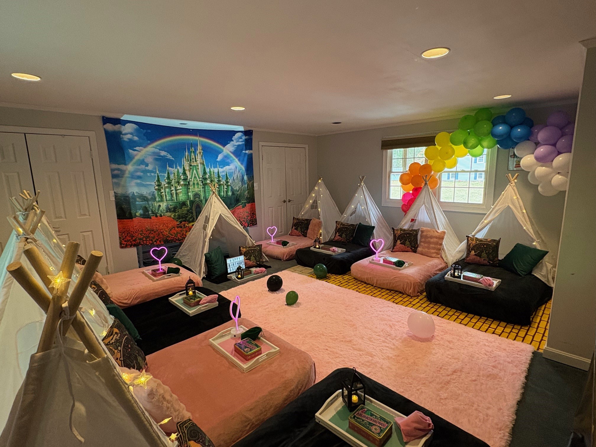Transform your child’s sleepover into an unforgettable night with our beautiful themed teepee tents and cozy bedding. Whether it’s a birthday party, celebration or just a fun night with friends, make it memorable.